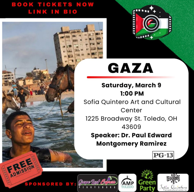 GAZA film kicks off the Toledo Palestine Film Festival tomorrow, Saturday March 9, 1 pm at the Sofia Quintero Art & Cultural Center.