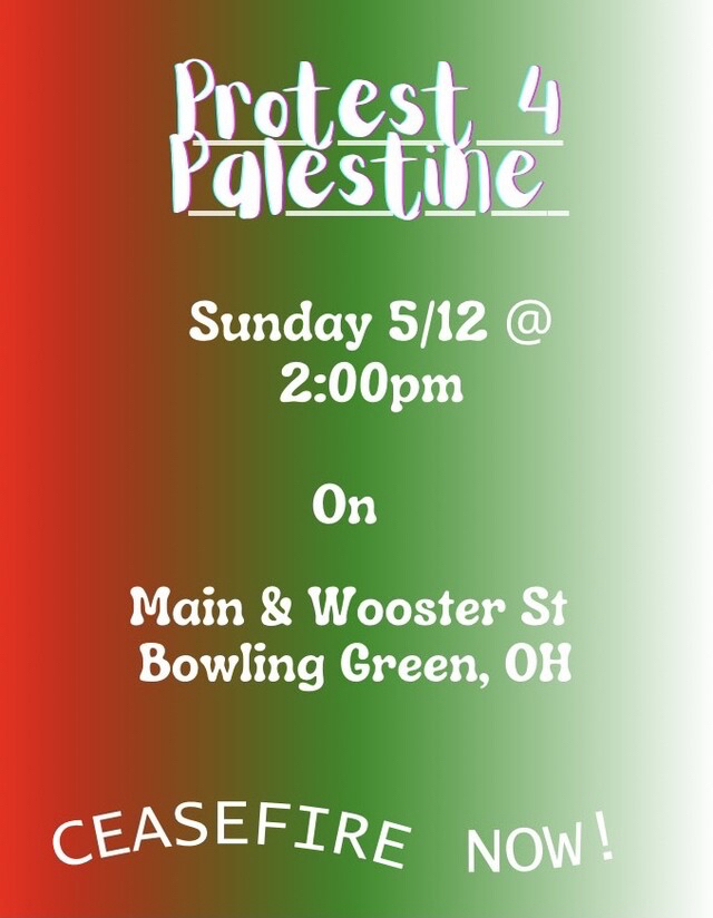 NWOPC ALERT! "PROTEST 4 PALESTINE" in Bowling Green - 2pm THIS SUNDAY on Main St. @ Wooster St.- "CEASEFIRE IN GAZA NOW!!! - see flyer