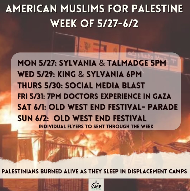 NWOPC ALERT! AMP-TOLEDO CHAPTER CALENDAR - WEEK OF 5/27-6/2 -- STAND UP FOR RAFAH!!!!!!!!!! see flyer