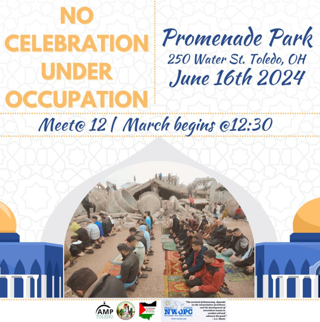 NWOPC ALERT! INVITATION TO ALL FROM AMP-TOLEDO - MARCH TOMORROW SUNDAY, 6/16/24 @ 12noon TO REMEMBER THOSE IN GAZA WHO CANNOT CELEBRATE EID!