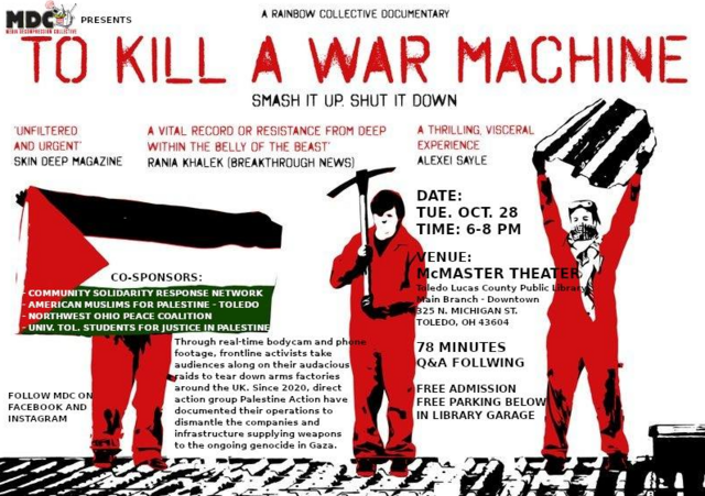 FREE SCREENING "To Kill A War Machine" Tues. Oct 28th @6:00pm-8:00pm, Toledo Main Library-Downtown, McMaster Theater - Please Come & Circulate widely!