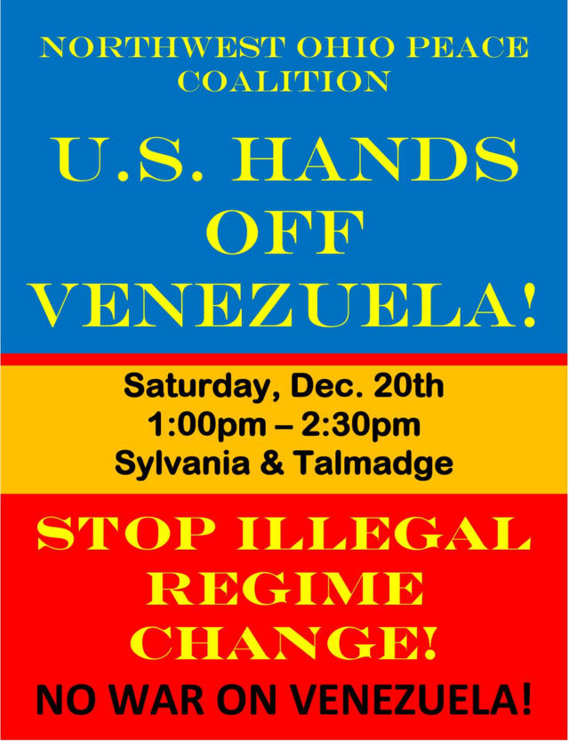 URGENT ALERT-PLEASE READ IMMEDIATELY! NO WAR ON VENEZUELA! Saturday, Dec 20, 1pm Sylvania & Secor - & CIRCULATE fFLYERS WIDELY!