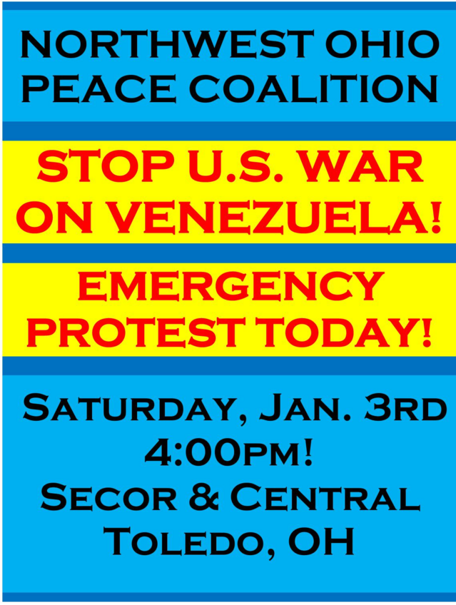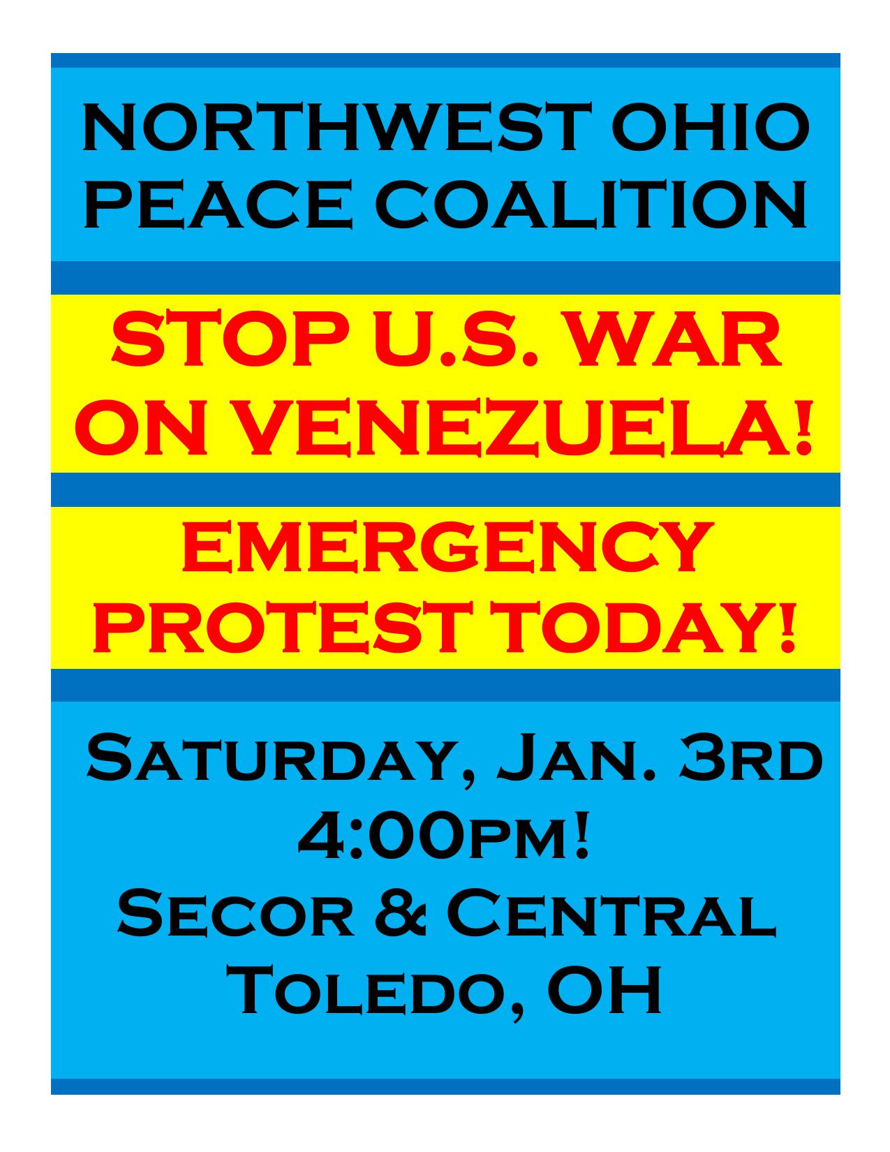 EMERGENCY PROTEST "STOP WAR ON VENEZUELA!" - TODAY @ 4pm - Secor & Central in Toledo, OH - > Please Come With Signs!!! Circulate Flyer Heavily!!!!