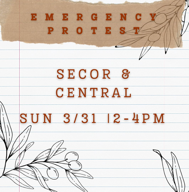 NWOPC ALERT: EMERGENCY PROTEST TODAY!- SUN 3/31/24 2pm-4pm SECOR & CENTRAL - see flyer