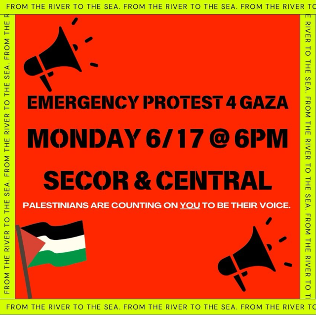 NWOPC ALERT! EMERGENCY PROTEST 4 GAZA TODAY! Monday, 6/17 @ 6pm SECOR & CENTRAL - see flyer- PLEASE COME: WE ARE THEIR ONLY VOICE!