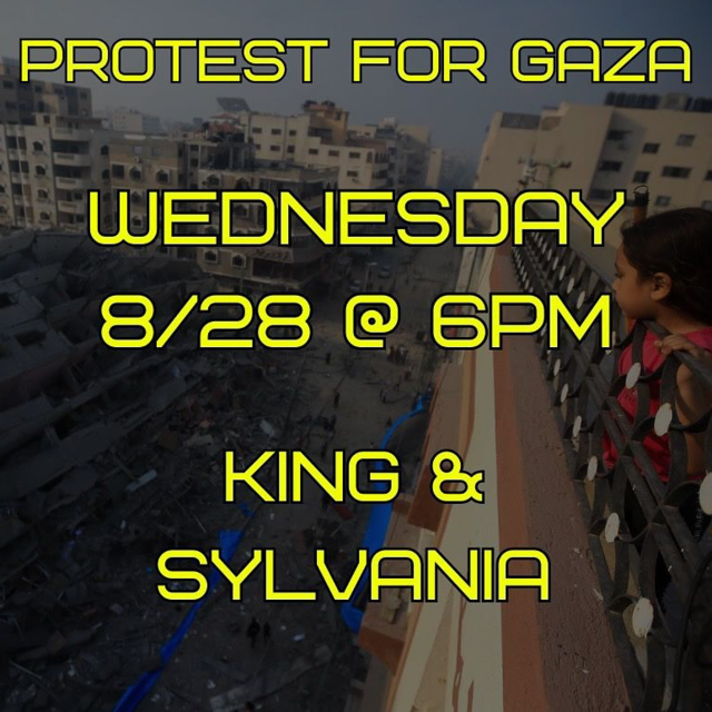 NWOPC ALERT! PROTEST FOR GAZA - WED 8/28 @ 6pm -- KING & SYLVANIA - see flyer